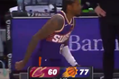 虎扑01月31日讯 NBA常规赛,骑士对阵太阳的比赛正在进行中。第三节比赛,杰伦-格林争抢篮板时重重摔倒在地,随后忍着疼痛再次登场。来源:虎扑
